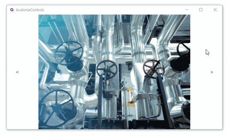 This example has three images in the items collection, with buttons to move the display forwards and back. The buttons have click event handlers in the C# code-behind.