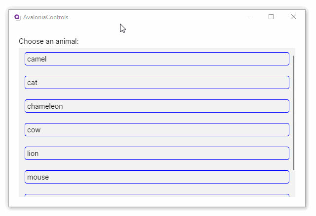 <ListBox x:Name="animals">